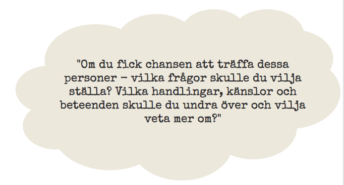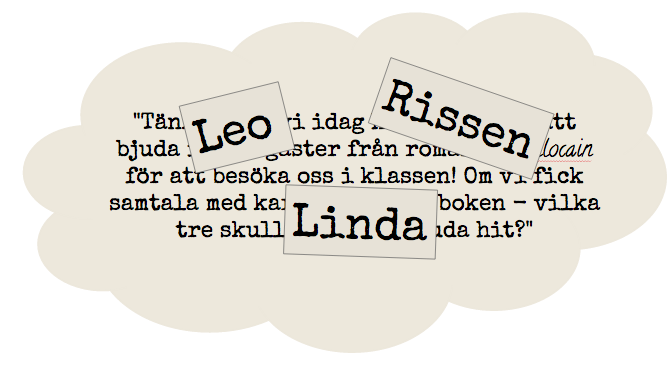 Innan det är dags att skriva PM ville jag göra något kreativt kring läsningen och genom detta dels få ytterligare bedömningsunderlag och information om vad eleverna nu hade fått ut av romanen, dels fördjupa förståelsen av boken tillsammans. Att gå direkt från självständig läsning till PM-skrivande kändes för avancerat, och inspirerad av Charlotta Aspelin bestämde jag mig därför att prova ”sitting drama”. Jag visste inte så mycket om detta tidigare men blev nyfiken när Charlotta skrev om detta på sin blogg – läs gärna om det här. Svenska 3 är dessutom en intensiv och avancerad kurs och en lättsam (men inte lätt!) och kreativ övning var helt enkelt välbehövligt. Dessutom tänkte jag att övningen nog kunde ge mig en del information om vilka som är funderat på vad i samband med läsningen, och att jag kunde få med mig dem som eventuellt inte blivit entusiasmerade av romanen. Eftersom jag just nu läser Astrid Roe arbetar jag extra medvetet efter hennes slutsatser, vilket jag kommer till lite längre fram.