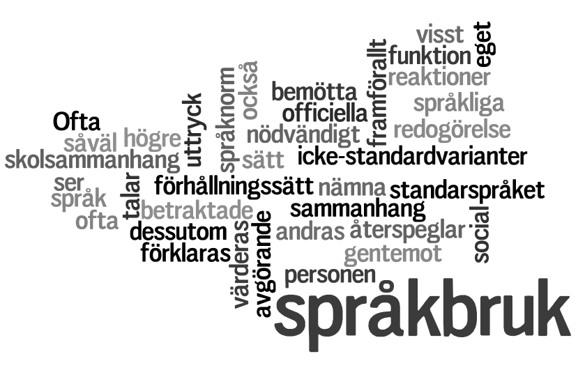 Jag brukar använda wordle på olika sätt, och eleverna tycker ofta det är roligt att prova detta i samband med skrivande. I detta verktyg klistrar man helt enkelt in en liten eller större textmassa och så omvandlas detta till ett ordmoln där ord som förekommer flera gånger blir större. I följande exempel har vi jämfört en elevtext i Svenska 1 med en utdrag ur en C-uppsats om språkförändring som jag hittade på DIVA – Digitala vetenskapliga arkivet. Det brukar bli intressanta diskussioner när de kommer igång och jämför varandras texter, eller jämför sina egna olika texter som de har sparat i sina portföljer. Det är ett sätt att komma åt ord som överanvänds, men också att få syn på vilka ordklasser som finns representerade och hur språket ser olika ut i olika texttyper.
