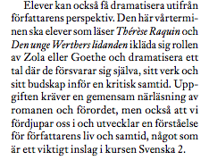 Klassen som jag har gjort det här med i vår har alltså, efter en introduktion av epokerna romantiken, realismen och naturalismen, och av författare och romaner, fått välja om de ska läsa Den unge Werthers lidanden eller Thérèse Raquin. Epokerna introducerade jag bland annat genom en kortföreläsning då eleverna fick anteckna under tiden, uppblandat med olika övningar, som exempelvis den här: