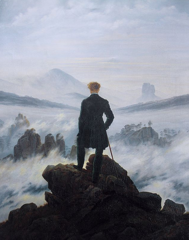 Jag delar upp eleverna i par och säger att halva klassen (en i varje par) ska blunda helt och hållet en stund. De andra ska få se ett konstverk under ungefär en minut och jag visar då en målning av den tyske romantikern Caspar David Friedrich (1774-1840). (Bilden är lånad från Wikipedia).