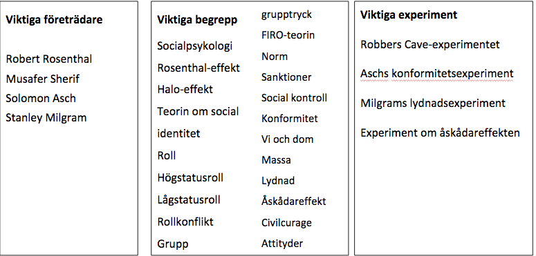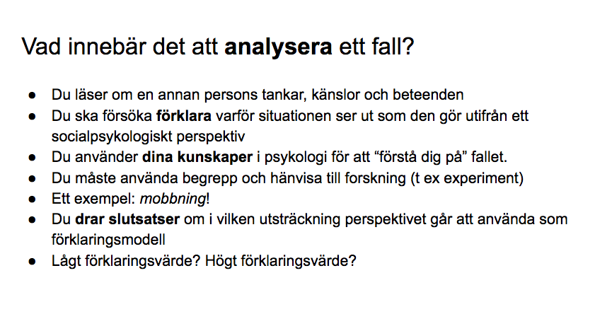 Eftersom socialpsykologin var det första området vi arbetade med i kursen, missade ganska många elever att koppla sina resonemang och sina slutsatser till relevanta begrepp. På lektionstid fick vi därför igen påminna oss själva om hur man kan göra: