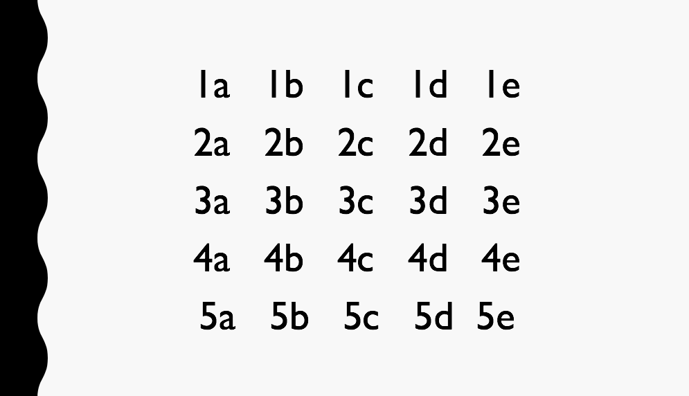 - Jag delar in eleverna slumpmässigt genom att ge varje elev en siffra och en bokstav enligt principen: